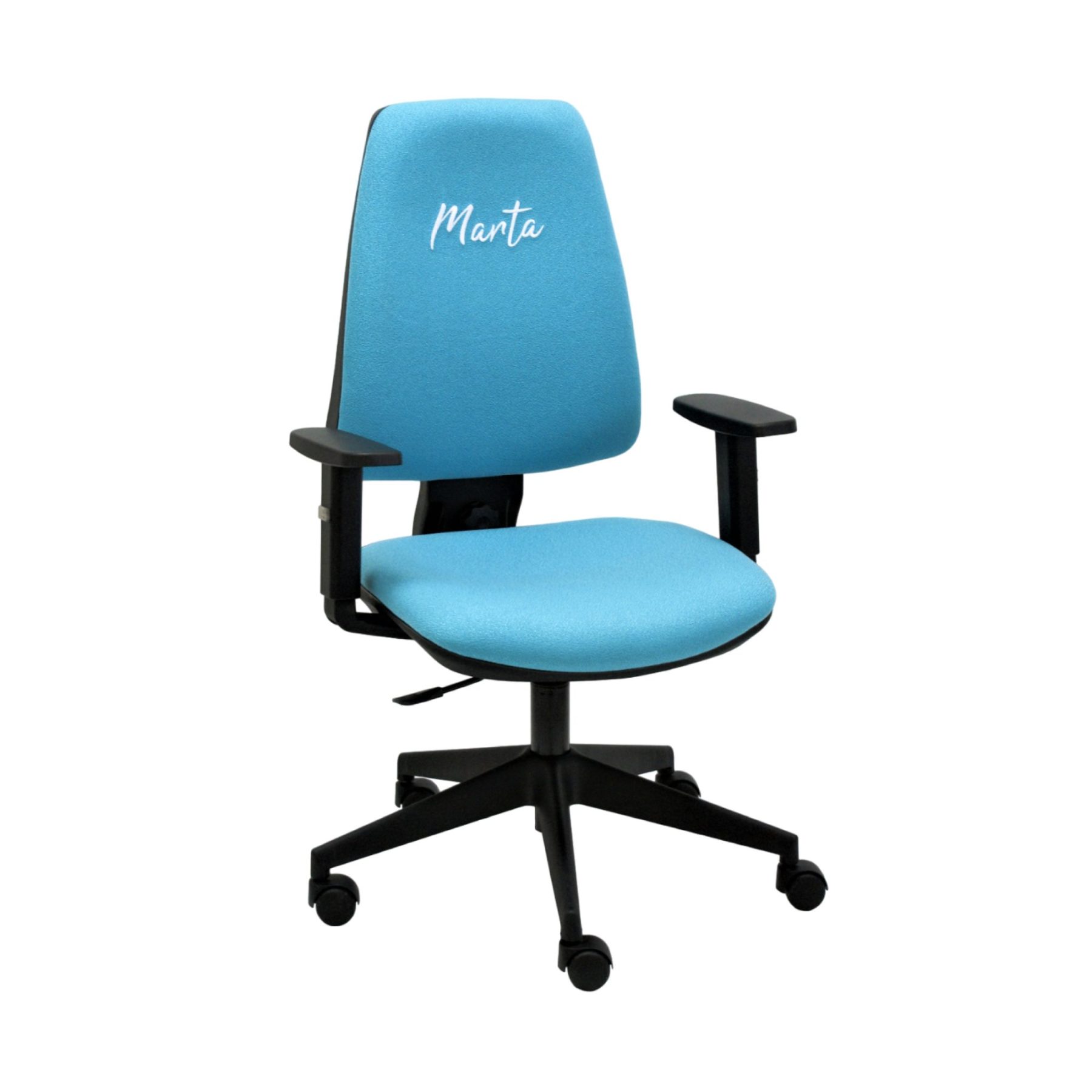 Convierte tu silla de escritorio en un objeto muy especial y único. Bordamos tu nombre para que tengas una pieza de mobiliario que sea realmente tuya, ideal para cualquier persona que quiera añadir un toque personal y significativo a su espacio de trabajo.